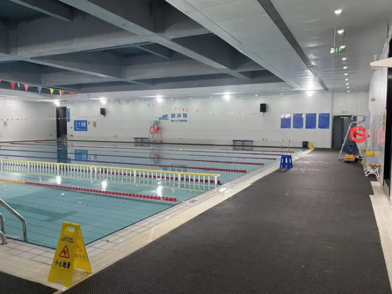Bahagian luar kolam renang mempunyai sistem panel skala ikan logam, mewujudkan kesan cahaya dan bayangan seperti skala yang berubah dengan kelengkungan fasad dan arah cahaya matahari, meningkatkan "aliran air." Seluruh struktur bumbung kawasan kolam renang tertutup terdedah, dengan kekuda yang merangkumi 48 meter, menekankan ekspresi logik struktur yang jelas dan mengukuhkan skala spatial dan rasa kuasa tempat sukan. Tempat ini menempatkan dua kolam: kolam persaingan dan kolam latihan. Kolam persaingan adalah 50 meter panjang dan lebar 25 meter, dengan 8 lorong; Kolam latihan adalah 50 meter panjang dan lebar 17 meter, dengan 6 lorong. Kedua -dua kolam adalah 2 meter dalam.