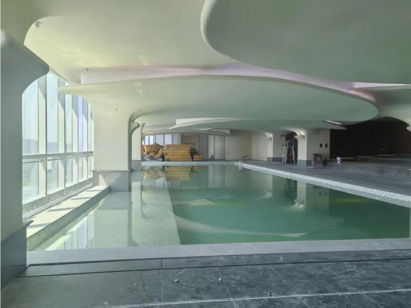 Untuk memastikan keselesaan yang stabil dan kebolehgunaan sepanjang tahun, kemudahan ini disokong oleh canggihPam Habateknologi dan cekapPenghawa Dinginsistem. Penyelesaian kawalan iklim bersepadu membantu mengekalkan persekitaran dalaman yang stabil, memastikan suhu optimum untuk kedua-dua ruang udara dan air di kawasan renang.